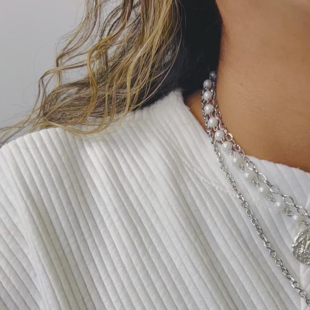 AKA Dainty Pearl and Chain Set of 3 Necklace Set. Sold as set. Can be worn separate or layered. The necklaces are not connected.
