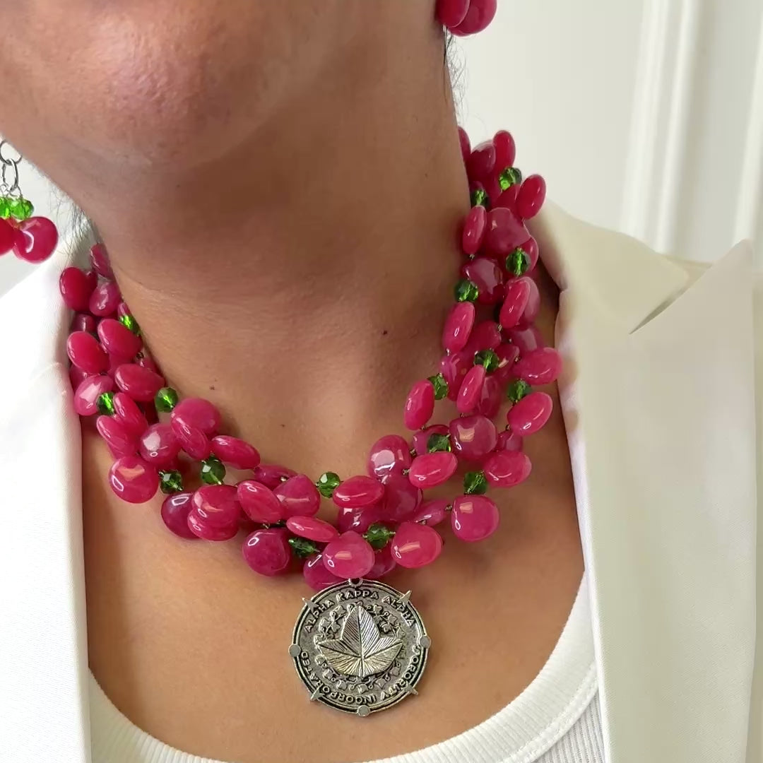 AKA Dark Pink Jade teardrop Necklace Earring Set