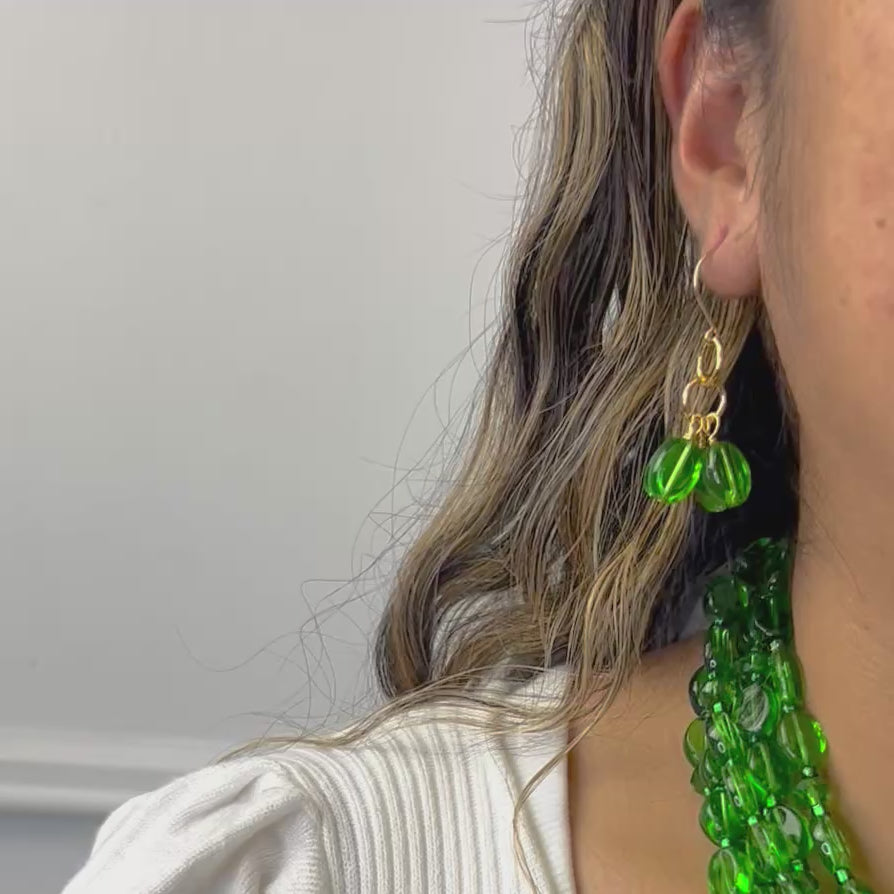 AKA Apple Green Oval Glass Multi Strand Necklace Earring Set