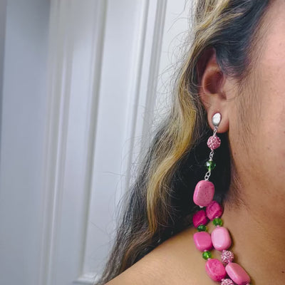 AKA Pink Green Howlite Crystal Necklace Earring Set