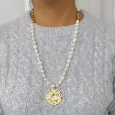 AKA White Freshwater Pearl Necklace featuring Ivy Trust Charm Pendant.