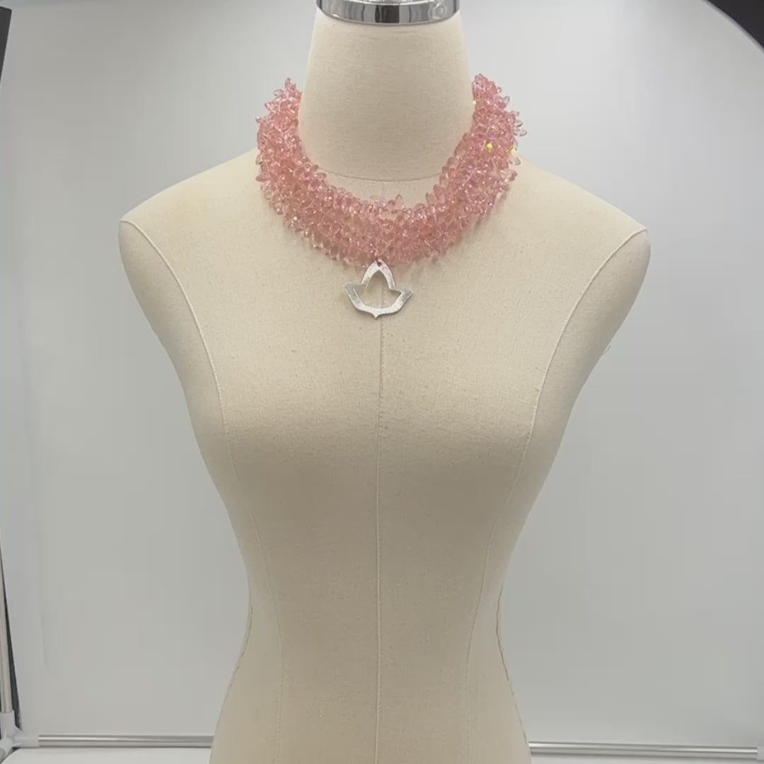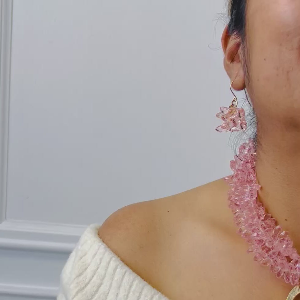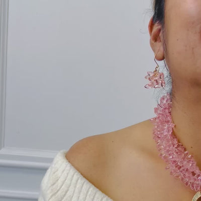 AKA Pink Faceted Teardrop Crystal Necklace Earring Set.