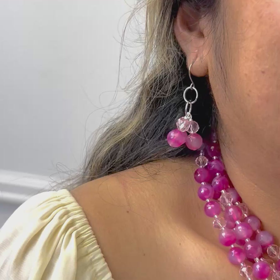 AKA Fuchsia Pink Faceted Agate Necklace Earring Set