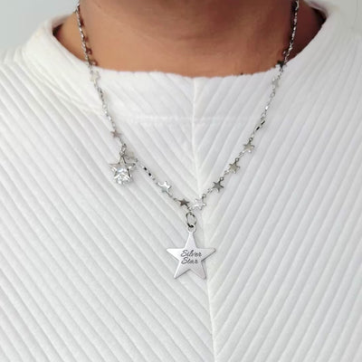 AKA Silver Star Pendant, featuring a side star charm on the chain necklace.