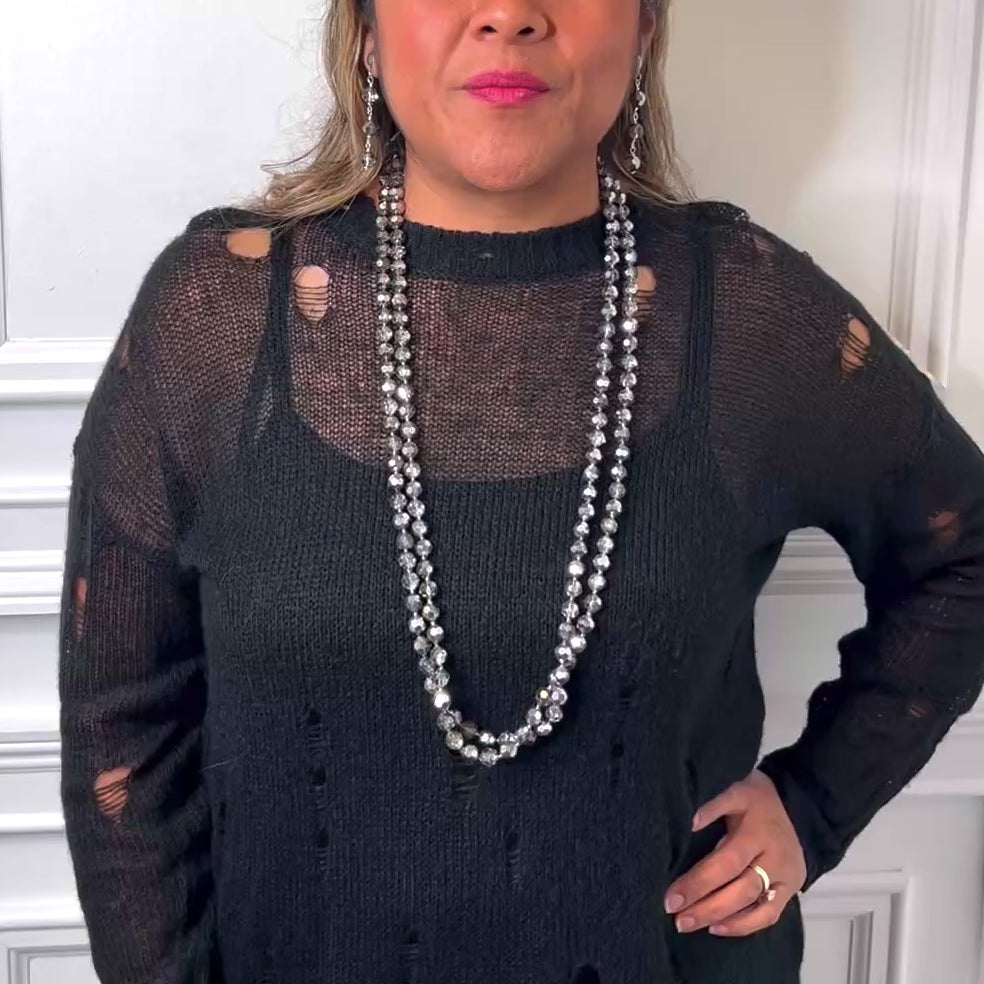 Silver Faceted Crystal Rondelle Necklace Earring Set