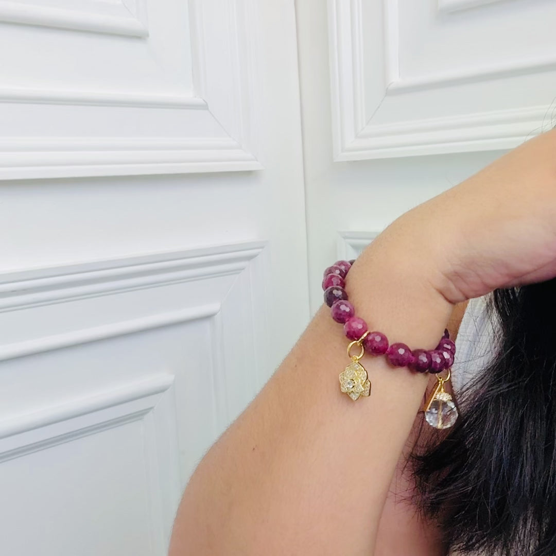 Behold the one and only Redish Pink Agate Stretch Bracelet - a delightful accessory that will add a touch of playful charm to any outfit!