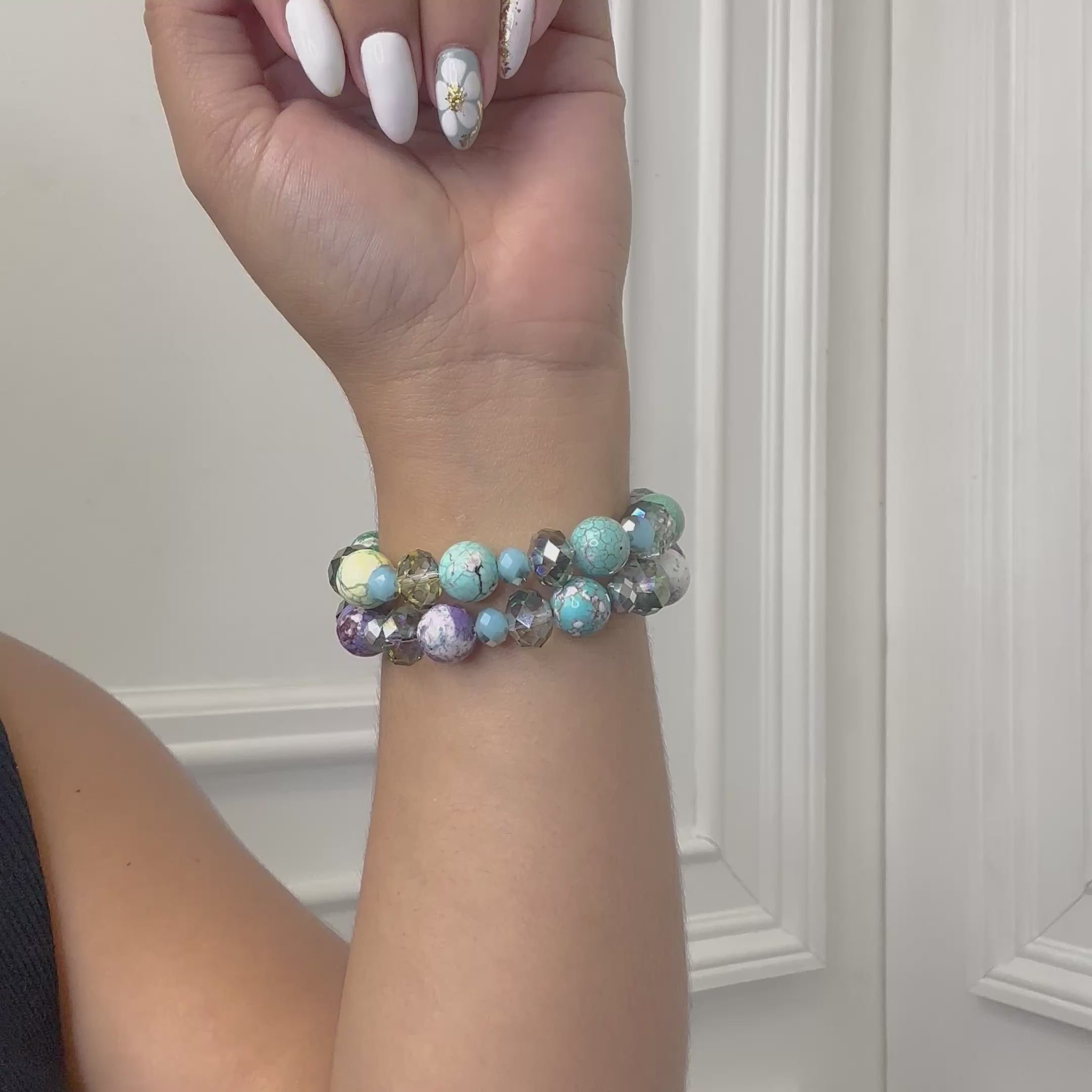 Multi Color Blue Agate Stretch Bracelets, Set of 2