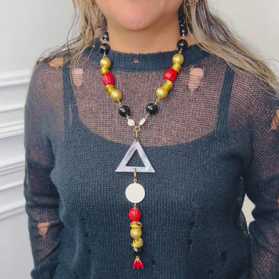 Delta Red Bamboo Coral, Wood and Horn Necklace