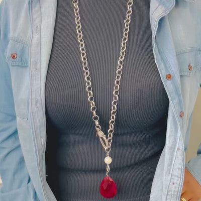 Delta Fortitude Red Faceted Crystal Teardrop Chain Necklace