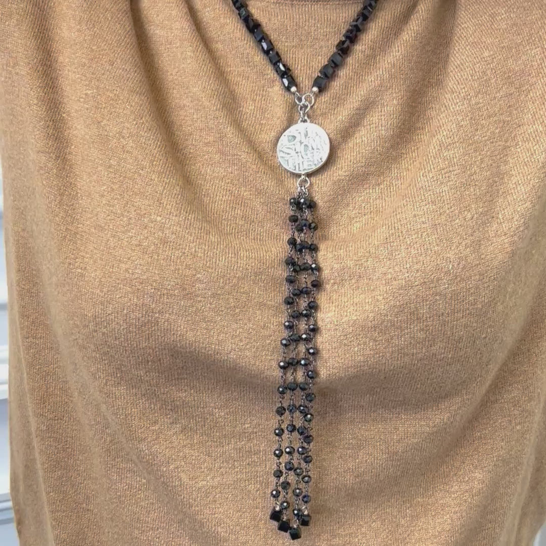 Delta Sigma Theta Black Crystal Tassel Necklace Earring Set