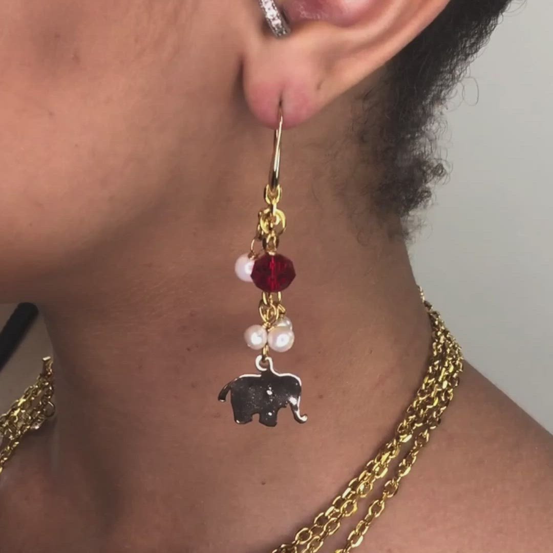 Delta Sigma Theta Elephant Freshwater Pearl Dainty Earrings