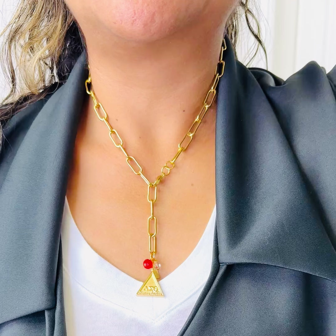 Delta Sigma Theta Paper Clip Necklace, 19" adjustable front Clasp.