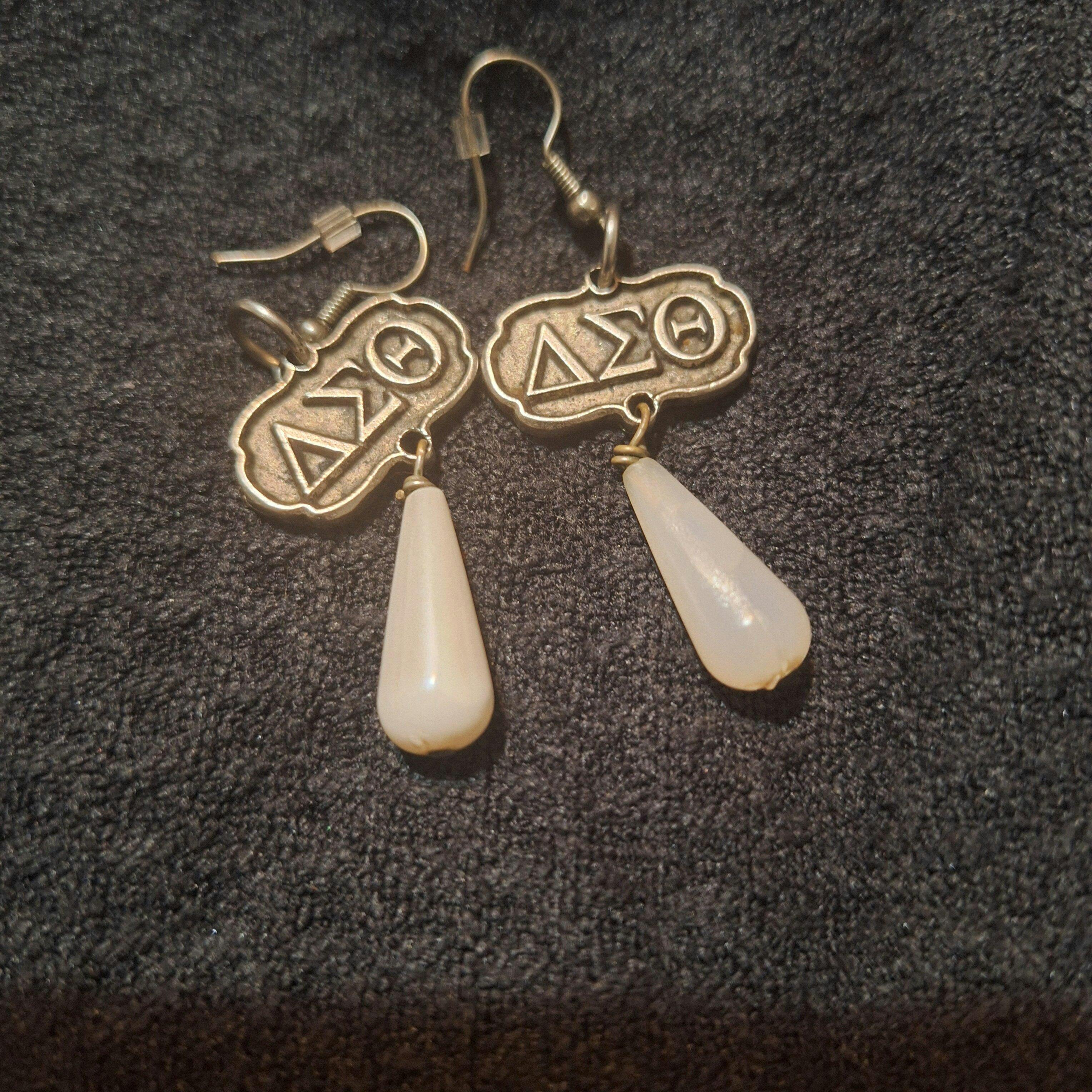 Delta Sigma Theta Greek Letter Faux Pearl Drop Earring with Hook