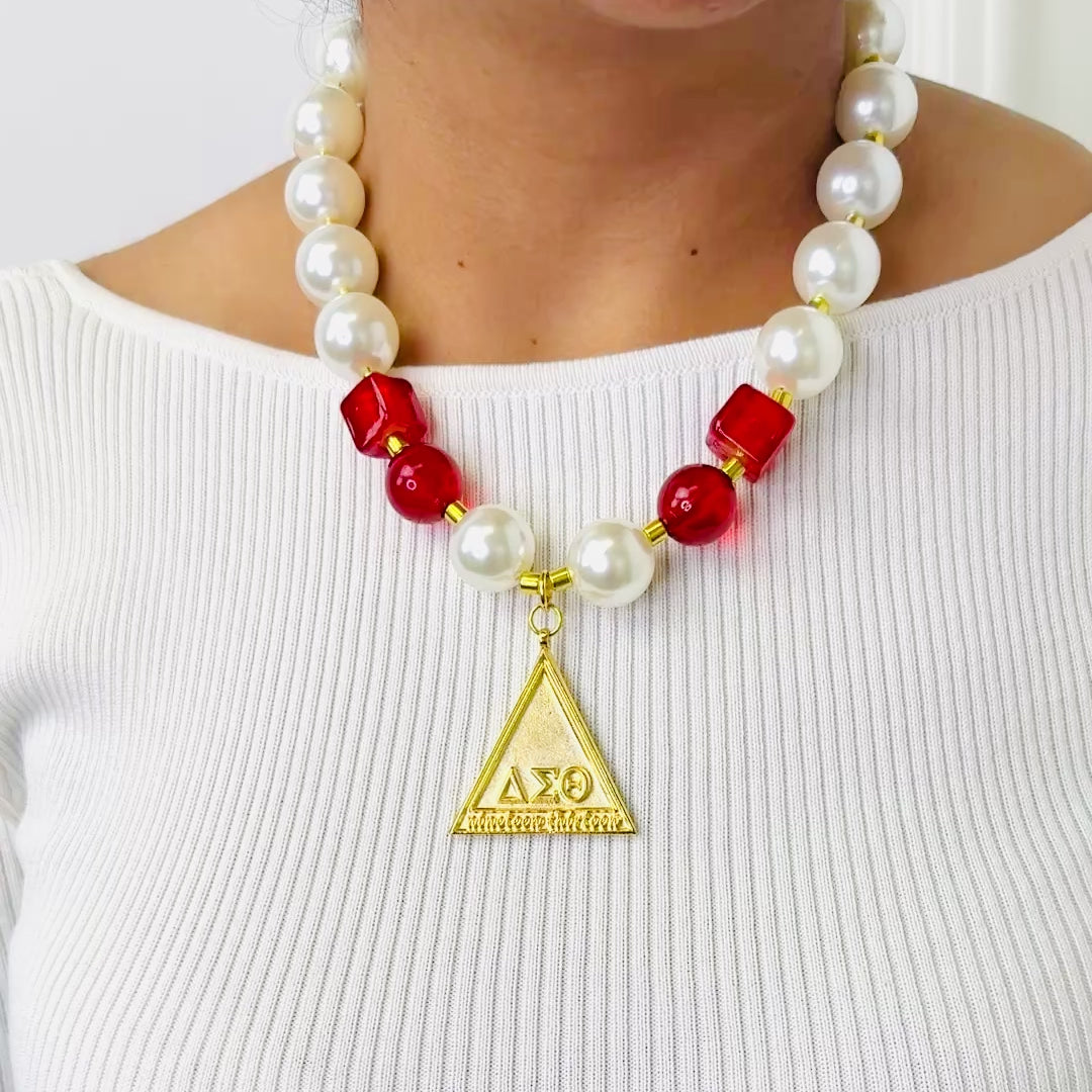 Delta Sigma Theta White Faux Pearl Necklace Earring Set