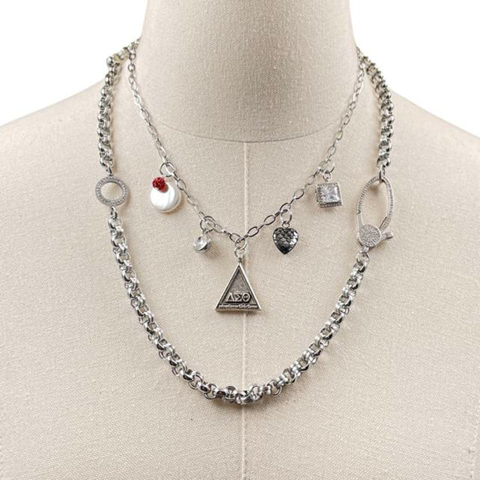 Delta Sigma Theta Stainless Chain, Micro Pave Clasp. Dainty Stainless 2nd Necklace. Sold as SET.