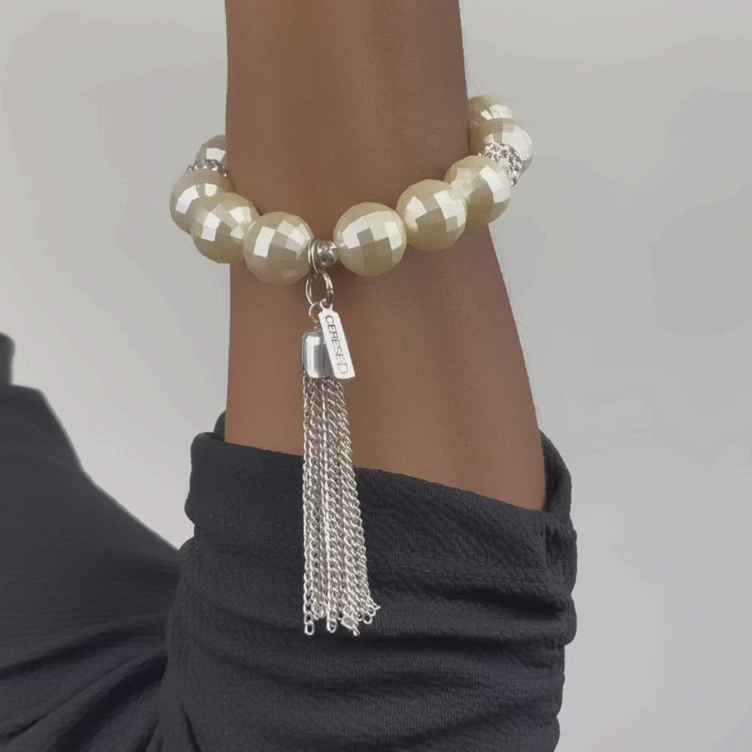 Dove Life Faceted Acrylic Faux Pearl Stretch Bracelet