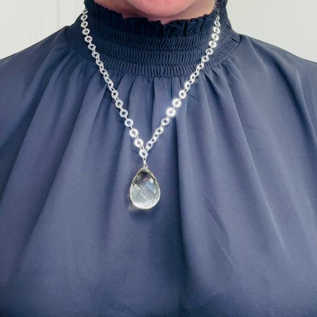 Lemon Quartz Faceted Triple A Quality Necklace. .925 Sterling Silver Chain.