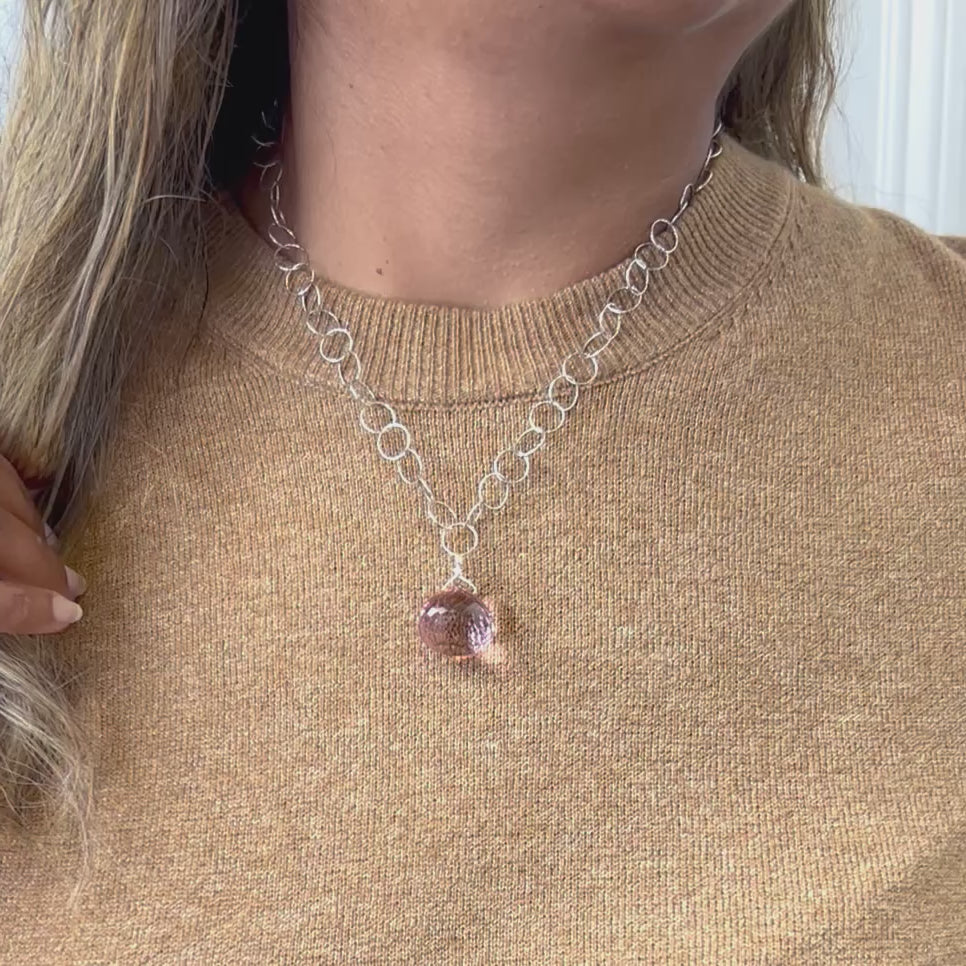 Pink Quartz Drop Necklace. Faceted Triple A Quality Faceted Quartz.