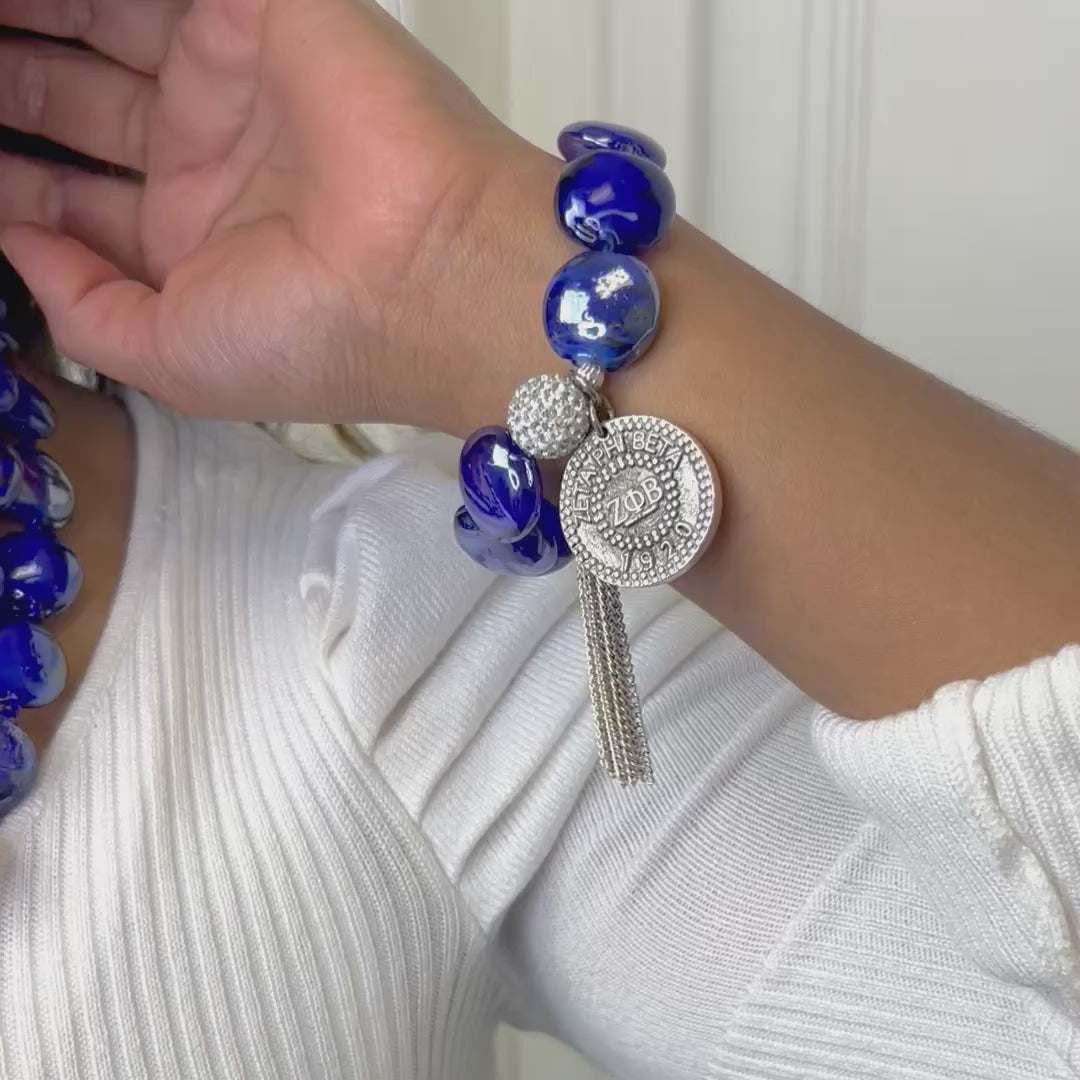 Zeta Blue Iridescent Foil 2 Strand Necklace/Bracelet Set. Sold as set.