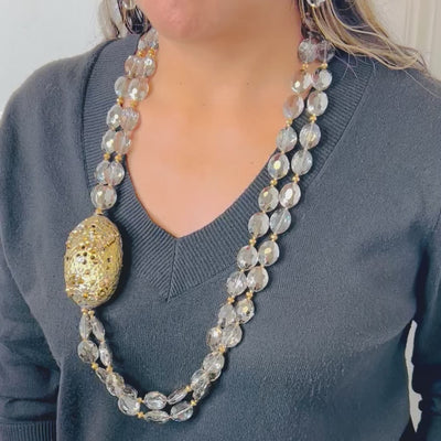 Silver Shadow Austrian Crystal, Hand embellished Swarovski Crystal Tibetan Metal side Pendant Necklace.