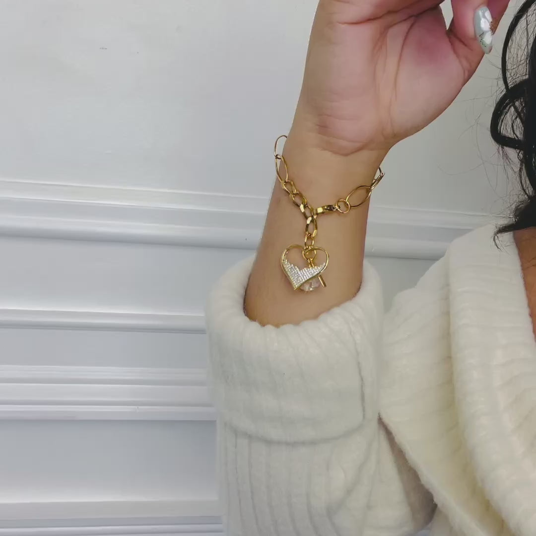 Dainty Oval Chain Bracelet with Pave Heart Charm