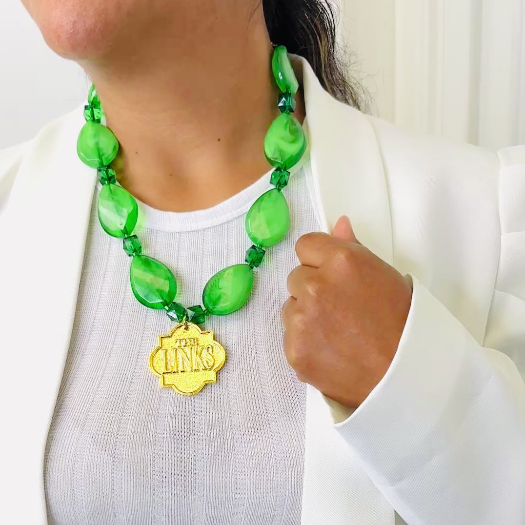 The Links, Inc. Green Vintage Acrylic Teardrop Necklace,