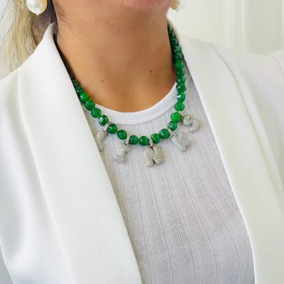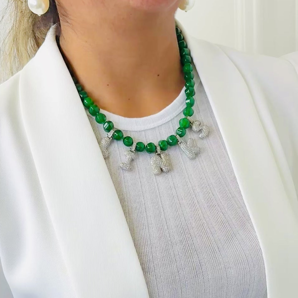 Links Faceted Green Jade, Micro Pave L I N K S Letters Necklace, 19" adjustable length.