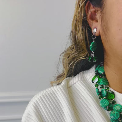 The Links, Inc. Coin Faux Malachite and Crystal Necklace Bracelet Earring Set