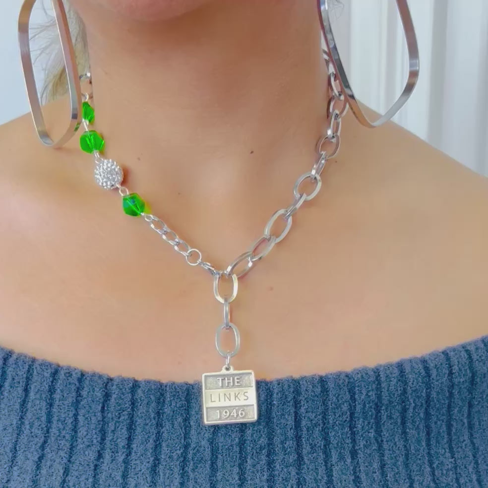 The Links, Inc. Oval Chain and Crystal Lariat Necklace