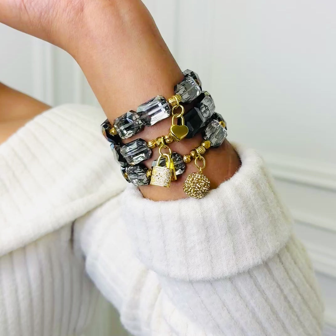 Black Shadow faceted crystals set of 3 Stack bracelets.