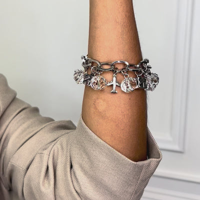 Clear Crystal, Airplane and Luggage Charm Bracelet.