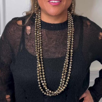 Gold Faceted Crystal Bun Multi Strand Necklace Earring Set.
