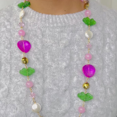 Pink and Green Green Carved Butterfly, Pink Rose Quartz, Glass Necklace Earring Set