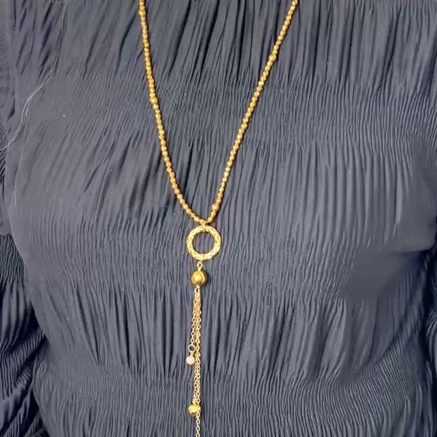 Gold Hematite Tiny Beaded Long Tassel Necklace