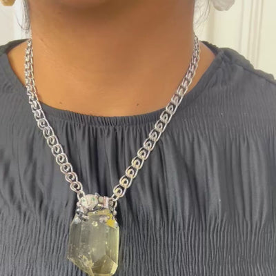 Natural Lemon Quartz Natural Gemstone Chunk Pendant Necklace