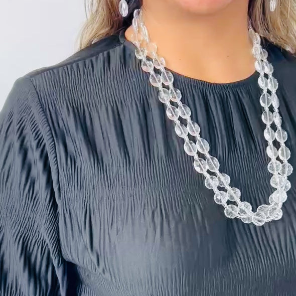 Oval Clear Crystal Double Strand Necklace