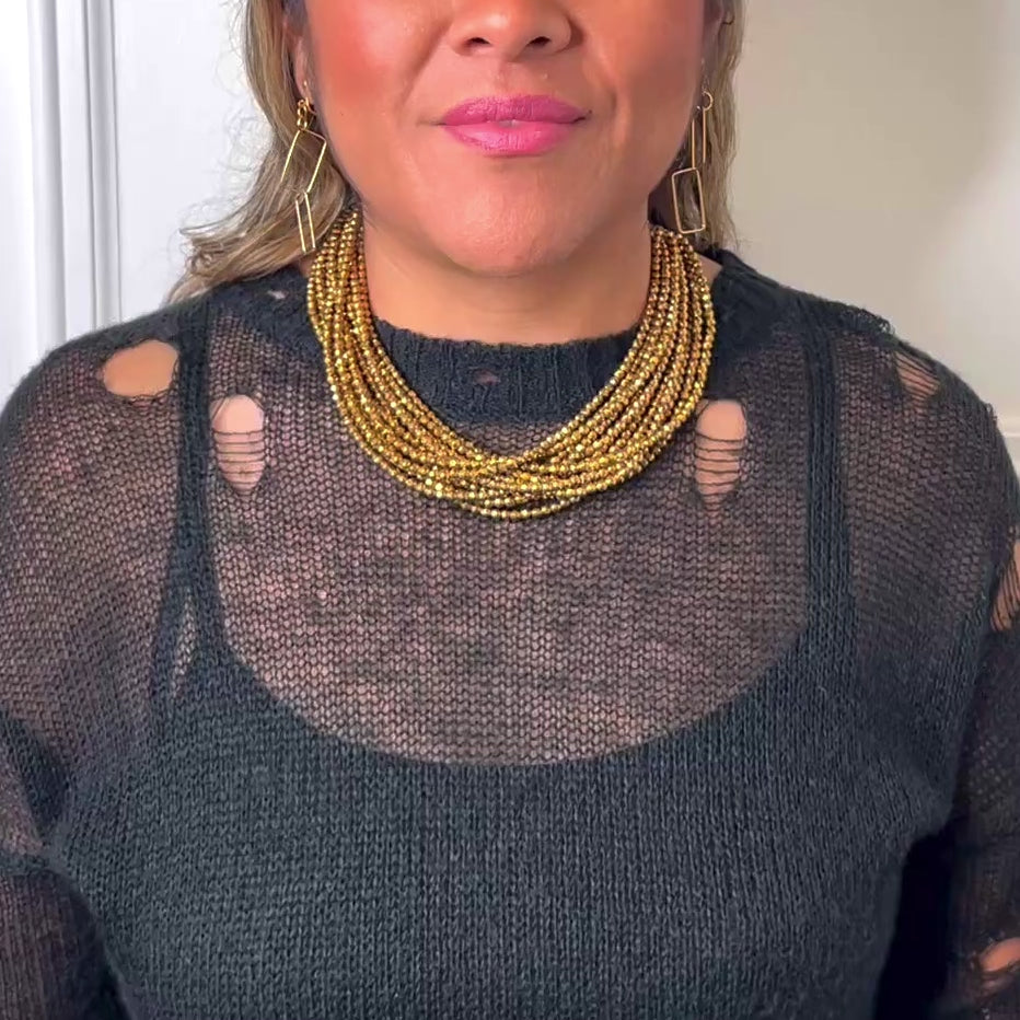 Gold Hematite Crystal Bun Faceted Multi Strand Necklace.