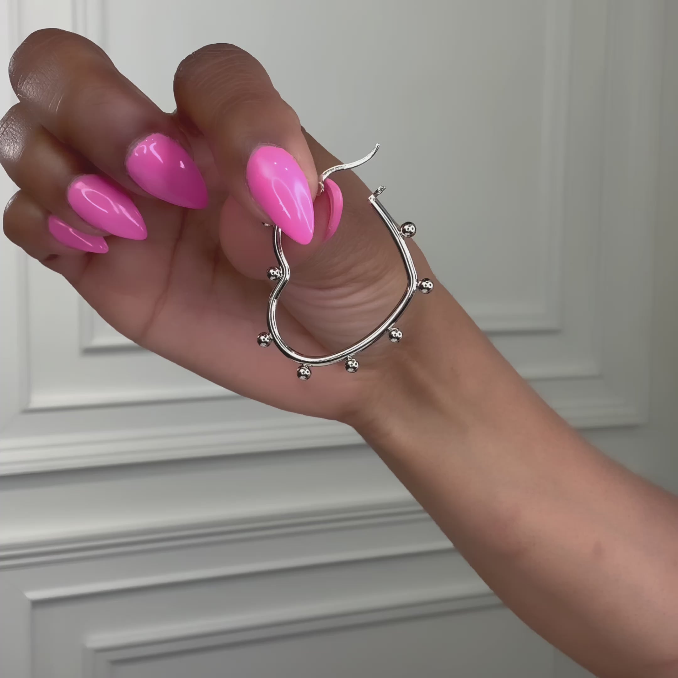 Studded Heart Earring with 4 Interchangeable Drops in Pink Rose Quartz, Clear Acrylic, Red Acrylic and White Shell Pearl