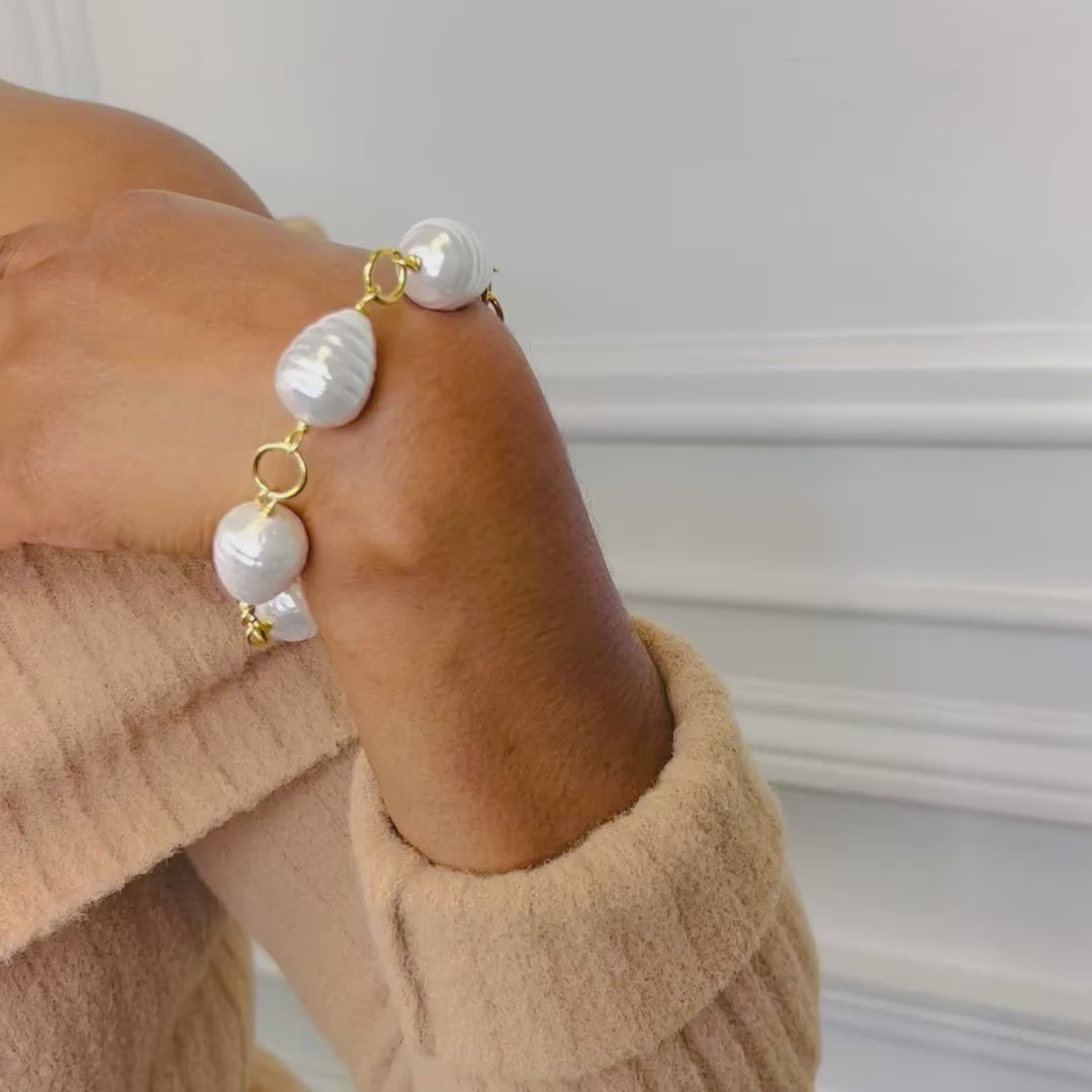 White Ribbed Shell Pearl Bracelet
