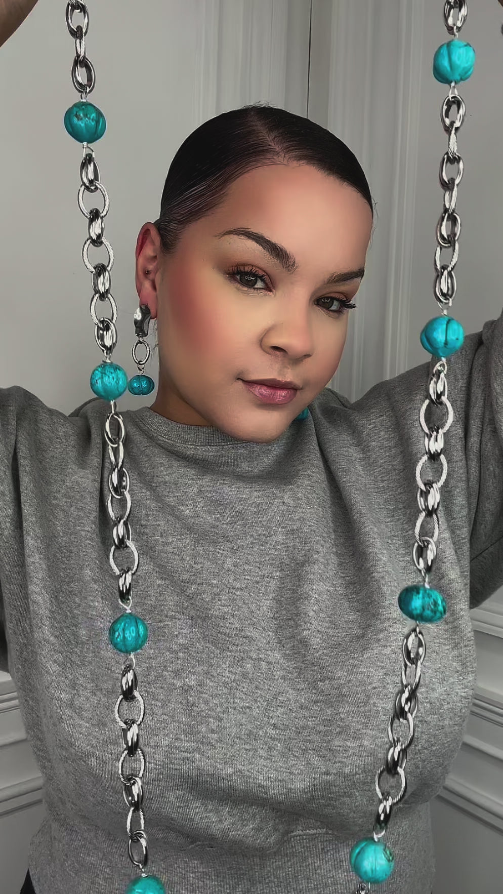 Natural Turquoise Carved Gemstone Necklace. Can be Worn as a Belt