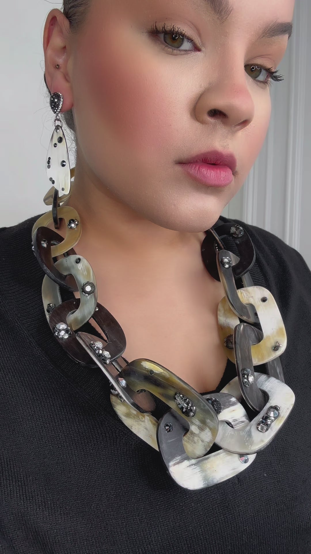 Buff Alo Chain Embellished Necklace with Swarovski Crystals. Necklace is Statement of the Year.