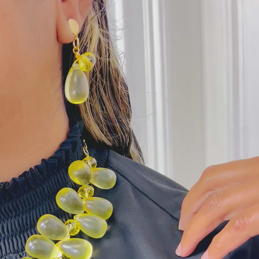 Yellow Gold Vintage Glass Teardrop Necklace Earring Set