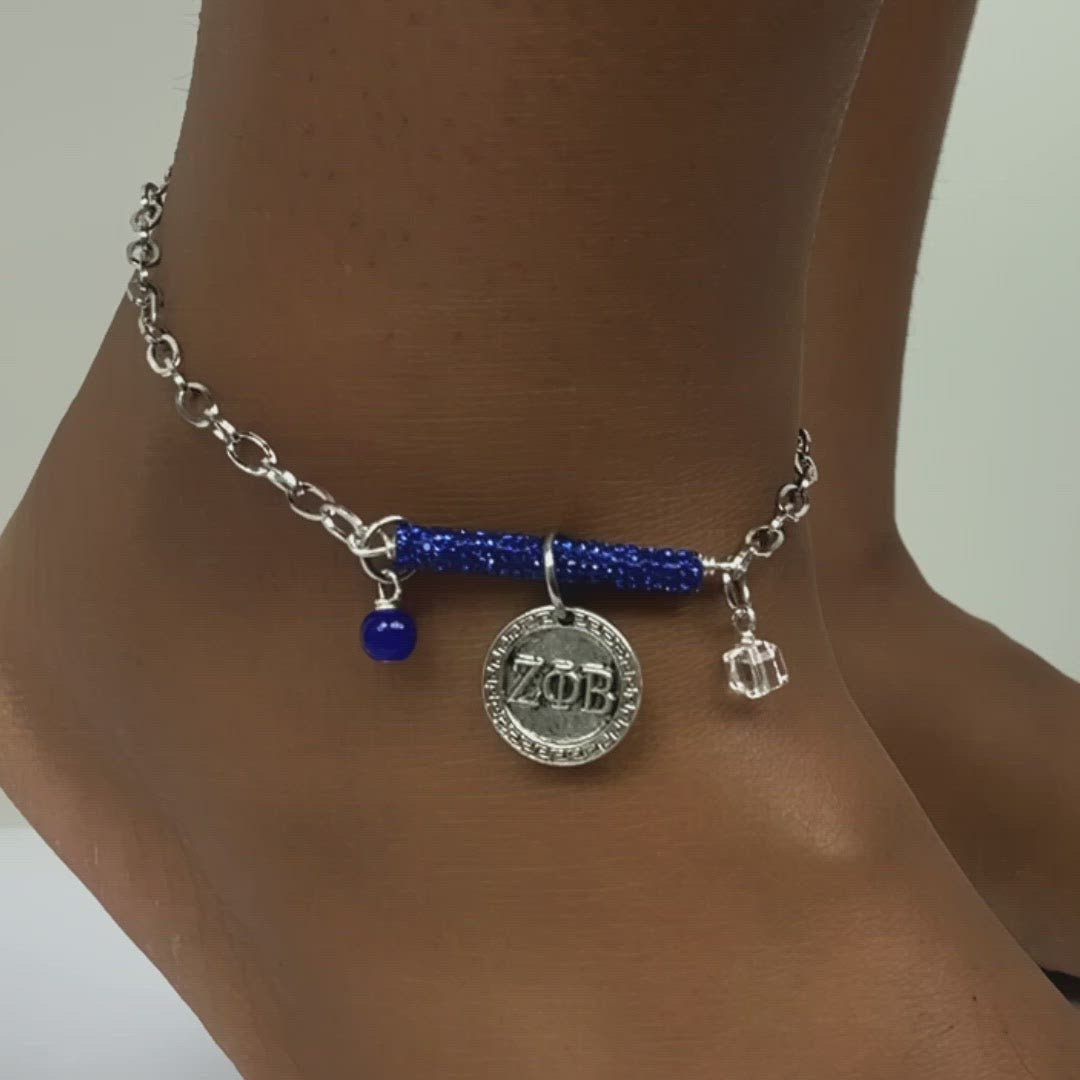 Zeta Phi Beta blue pave bar anklet on Stainless Steel Chain, adjustable length.