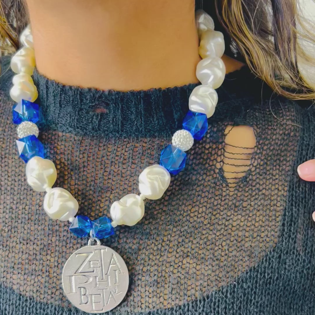 Zeta Phi Beta Blue Acrylic and Faux Baroque Pearl Necklace