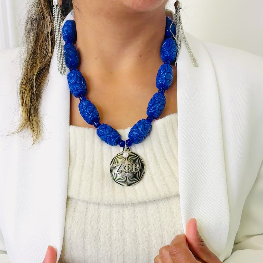 Zeta Phi Beta Blue Carved Synthetic Coral Necklace