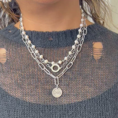 Zeta Dainty Set of 3 Paperclip Freshwater Pearl Necklace