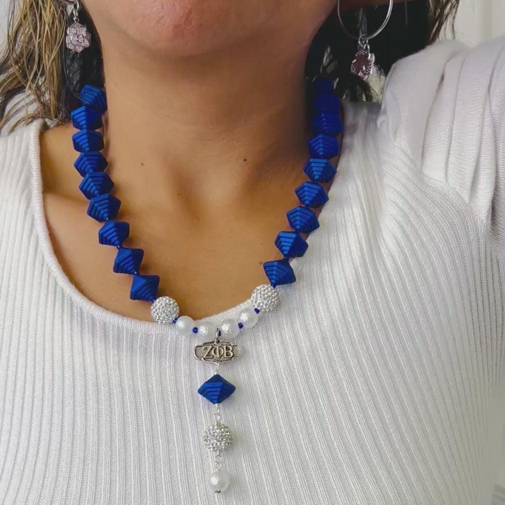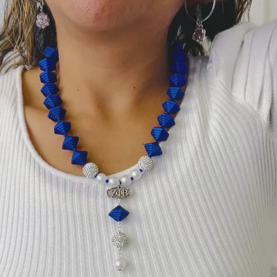 Zeta Blue Faux Leather and Pearl necklace, 20" adjustable length.
