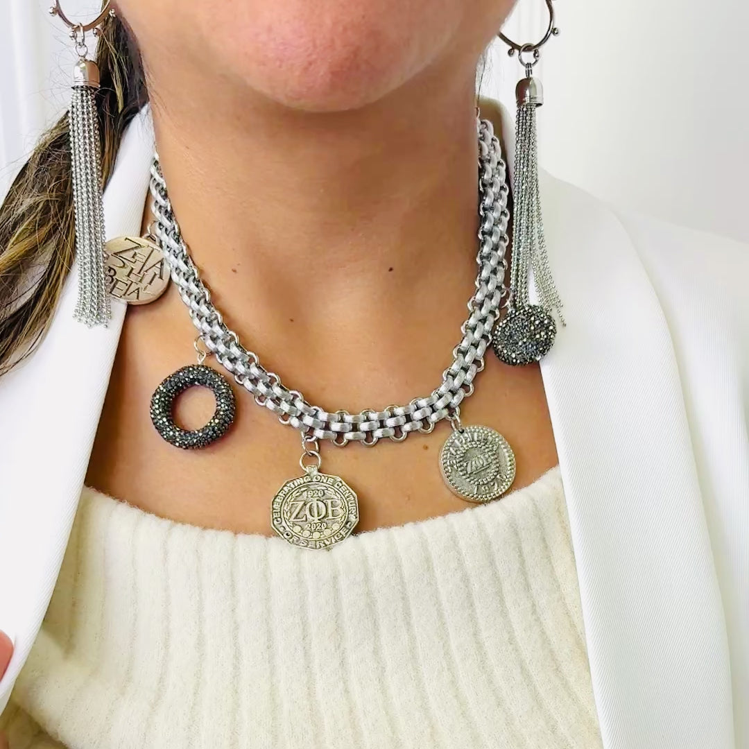 Zeta Charm Necklace, Fancy Stainless Chain, 19" adjustable length.