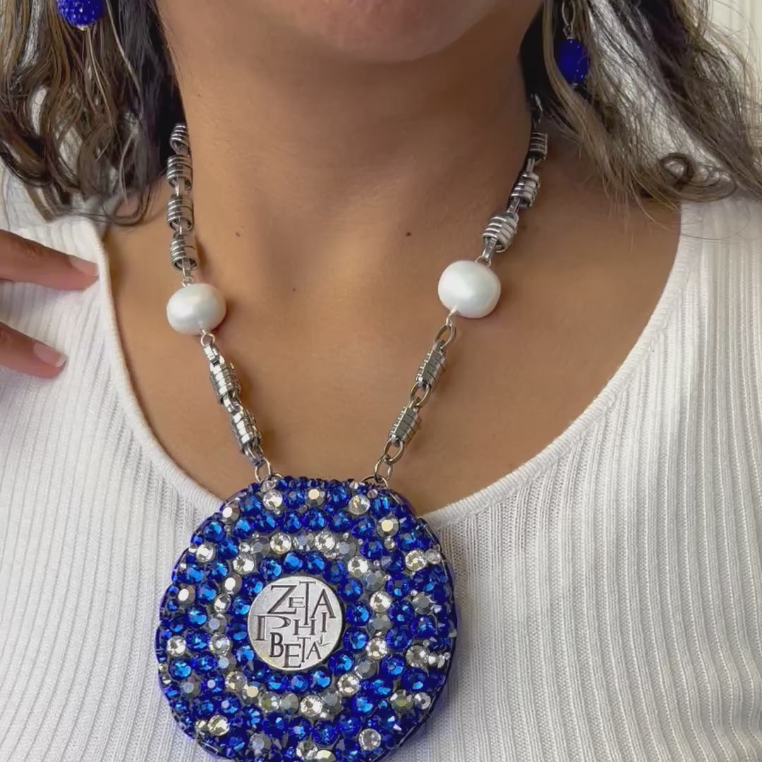 Zeta Phi Beta Hand Embellished Blue Swarovski Crystal Pendant necklace. Option A and B. These are heavy with Extra Large pendant pieces!